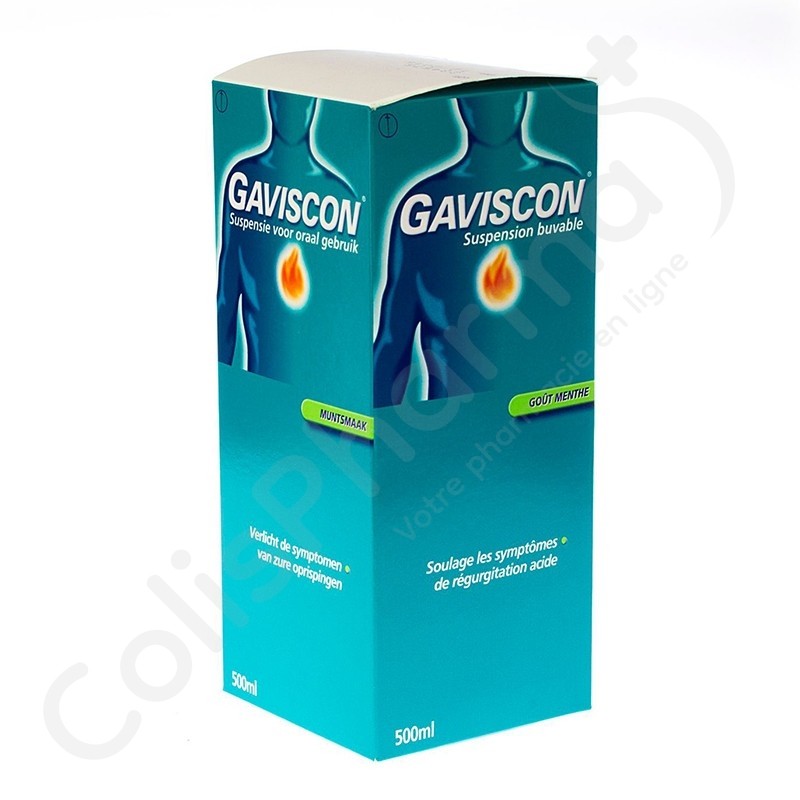 Gaviscon suspension traite les symptômes liés au reflux de l'acide gastrique vers l'oesophage, tels que régurgitation acide, brûlant et indigestion. Ces symptômes se produisent p. ex. pendant la grossesse, après une opération de l'estomac, suite à une oesophagite par reflux ou encore lors d'une hernie du diaphragme.