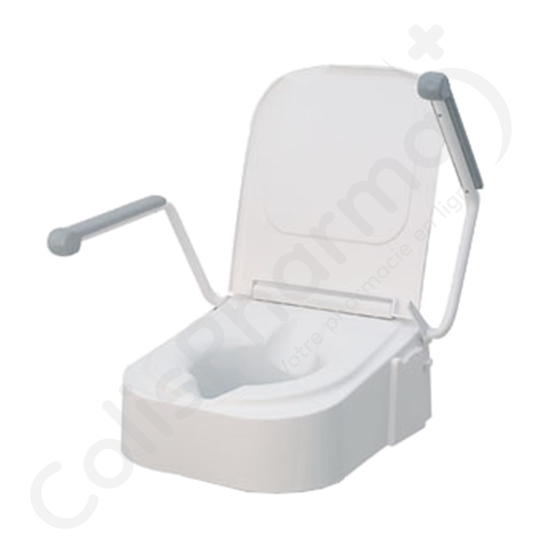 Ce rehausse WC avec accoudoirs et couvercle se positionne sur vos toilettes en s'emboîtant parfaitement.