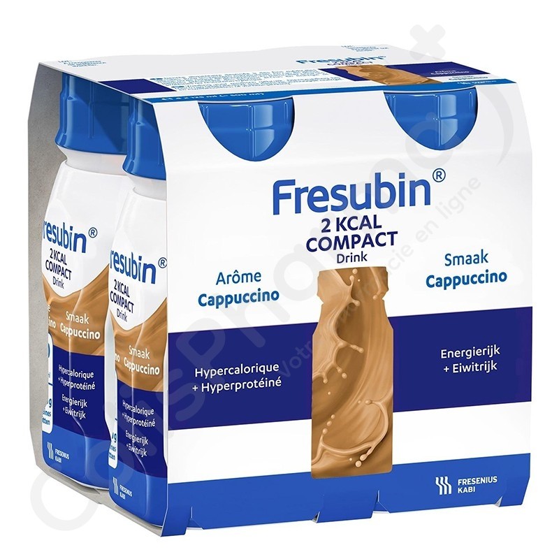 Fresubin 2kcal Compact Cappuccino est hypercalorique (2 kcal/g) et hyperprotéinée. Cette crème est un aliment enrichi d'énergie qui est stérilisée et prête à l'emploi.