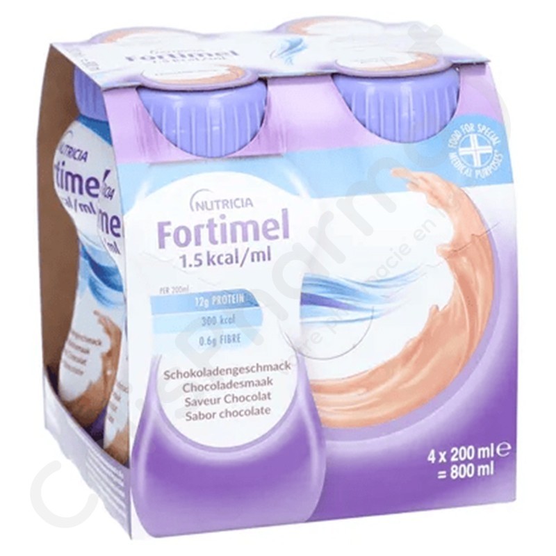 Fortimel 1.5kcal Chocolat est une boisson diététique pour la malnutrition liée à la maladie. Fortimel 1.5kcal Chocolat est une formule de boisson complète, riche en énergie et prête à l'emploi. Elle apporte des protéines, de l'énergie, des vitamines et des minéraux pour combler d'éventuelles carences. Elle contribue ainsi à l'amélioration de votre état nutritionnel.