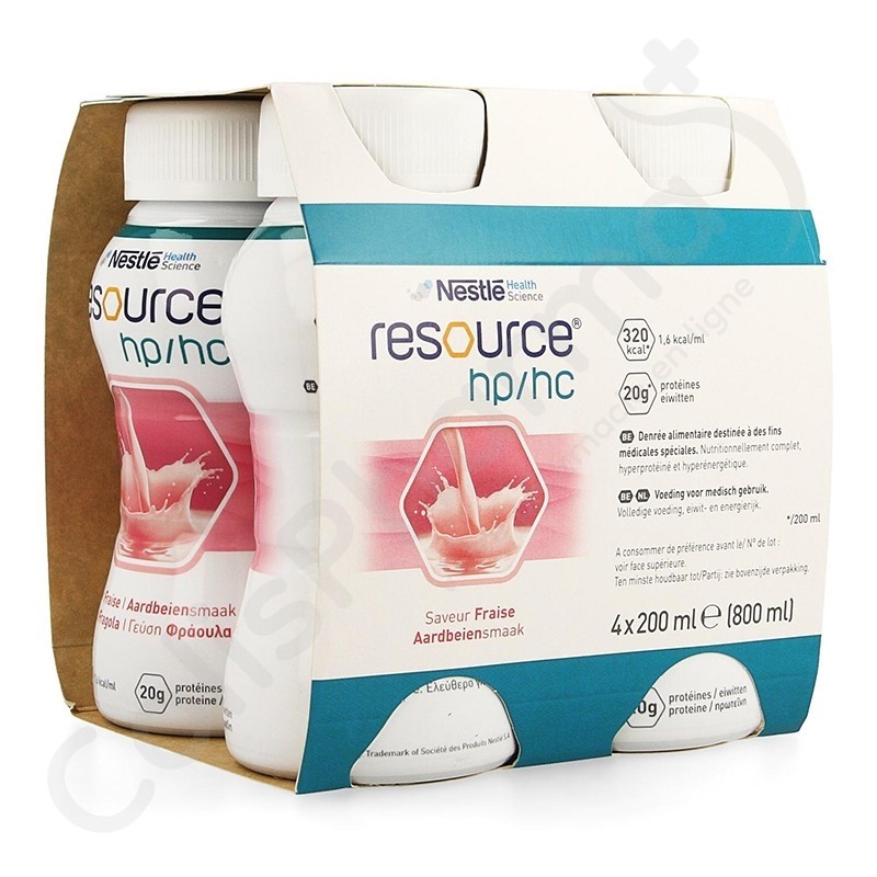 Resource HP/HC est un aliment buvable complet, prêt à l’emploi, enrichi en protéine (25% kcal) et hypercalorique (1,6 kcal/ml), à base de lait. Resource HP/HC est un aliment diététique en cas de dénutrition ou risque de dénutrition pour les personnes avec des besoins énergétiques et protéiques accrus. Resource HP/HC convient comme seule source d’alimentation.