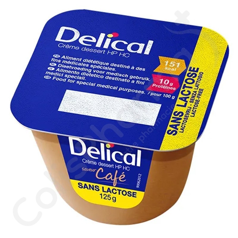 Delical Crème Dessert HP-HC Sans Lactose Café est une crème nutritive hypercalorique et hyperprotéinée.