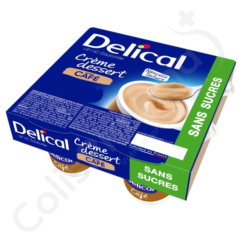 Delical Crème Dessert HP-HC Sans Sucres est une crème dessert nutritive, riche en énergie et en protéines, utilisée notamment par des personnes dénutries qui ont besoin d'un apport calorique supplémentaire.