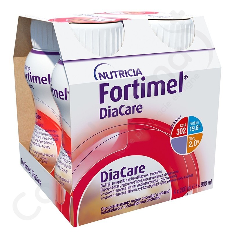 Fortimel DiaCare est un complément nutritionnel oral complet, hyperprotéiné, hyperénergétique, avec fibres. Fortimel DiaCare est une denrée alimentaire destinée à des fins médicales spéciales, pour les besoins nutritionnels des patients dénutris avec un diabète ou une hyperglycémie.
