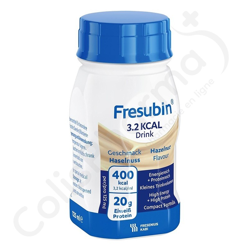 Fresubin 3,2kcal Drink Noisette est un aliment buvable enrichi en énergie. Cette boisson est hyperprotéinée et hypercalorique (3,2 kcal / ml).