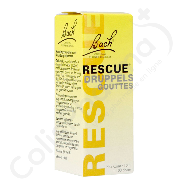 RESCUE® Gouttes est une création de Bach à base d'ingrédients naturels, qui associe les cinq fleurs de Bach déjà reprises dans la composition originale du RESCUE® (cherry plum, clematis, impatiens, rock rose et star of Bethlehem).