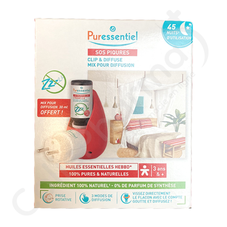 Diffusez, respirez… et profitez pleinement des bienfaits des huiles essentielles ! Le Diffuseur Ultrasonique Prise Clip & Diffuse est un modèle déposé exclusif Puressentiel permettant la diffusion d'huiles essentielles grâce à son système de diffusion à ultrasons qui délivre de subtils jets de brume aromatique. Il est idéal pour un usage au quotidien en toute sérénité et s’intègre parfaitement à vos lieux de vie (maison, bureau, vacances).