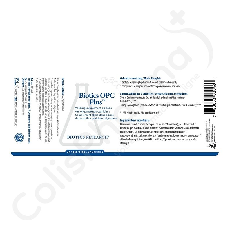 Biotics OPC Plus est une combinaison d'extrait de pépins de raisin et de pycnogénol, riche en OPC. Les OPC sont des agents actifs naturels que l'on trouve dans les plantes. On les trouve généralement dans les pépins de raisin, les baies et d'autres plantes. De nombreux médecins et nutritionnistes affirment que les polyphénols font partie des substances vitales les plus importantes dont le corps a besoin.