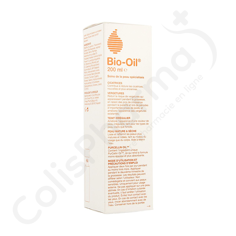 Bio-Oil est un produit cutané spécialisé sous forme d'une huile sèche qui est absorbée rapidement et profondément dans la peau. Elle a été développée à base de vitamines et d'huiles naturelles pour améliorer l'aspect des cicatrices (aussi bien nouvelles qu'existantes) et prévenir et amoindrir les vergetures. Bio-Oil peut également être utilisée pour nourrir intensivement la peau.