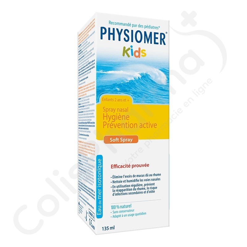 Physiomer Kids Spray Nasal est un lavage dynamique des fosses nasales. Rétablit la respiration de votre enfant en cas de nez bouché et prévient la fréquente complication du rhume en otite. Au quotidien, il le protège des infections nasales à répétition lors de son entrée à la crèche ou à l'école.