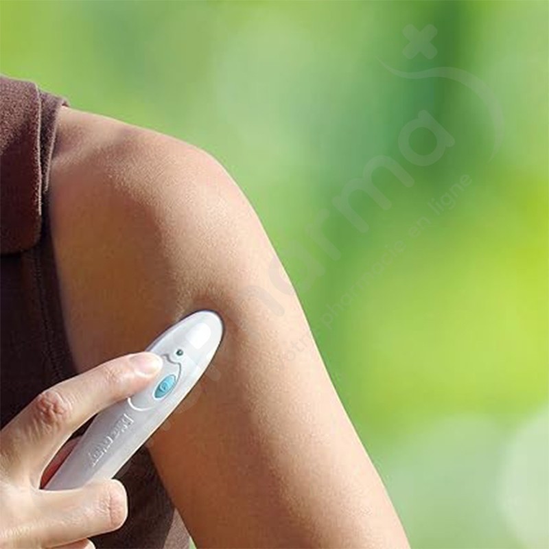 Maintenir le stylo sur la peau jusqu'au second signal sonore