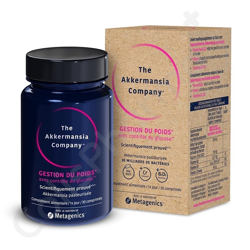 Akkermansia Company Gestion Du Poids contient du thé vert qui aide à la gestion du poids et du chrome qui contribue au maintien d'une glycémie normale.