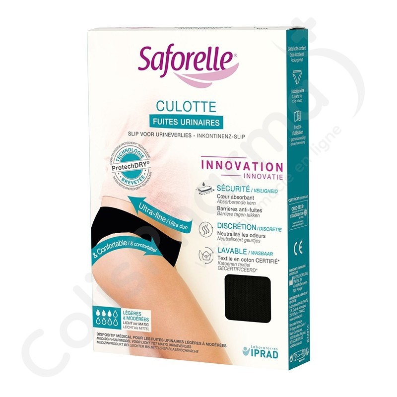 Saforelle Culotte Fuites Urinaires est une protection hygiénique pour les femmes sujettes aux fuites urinaires légères à modérées. La culotte Fuites Urinaires Saforelle est un sous-vêtement classique avec une technologie innovante permettant de vous protéger des fuites tout en vous assurant confort et discrétion au quotidien.