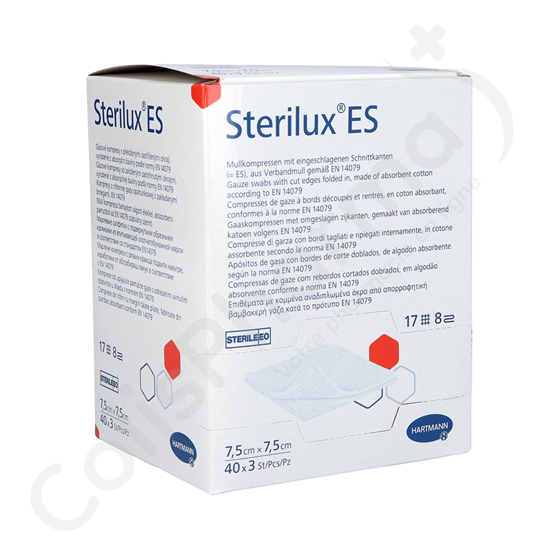 Les compresses de gaze sont douces et perméables à l’air. Elles sont pliées en 8 couches et peuvent donc être dépliées pour obtenir un format plus large et plus mince. ES signifie que les compresses sont découpées et ont des lisières rentrées ce qui empêche l’effilochage.