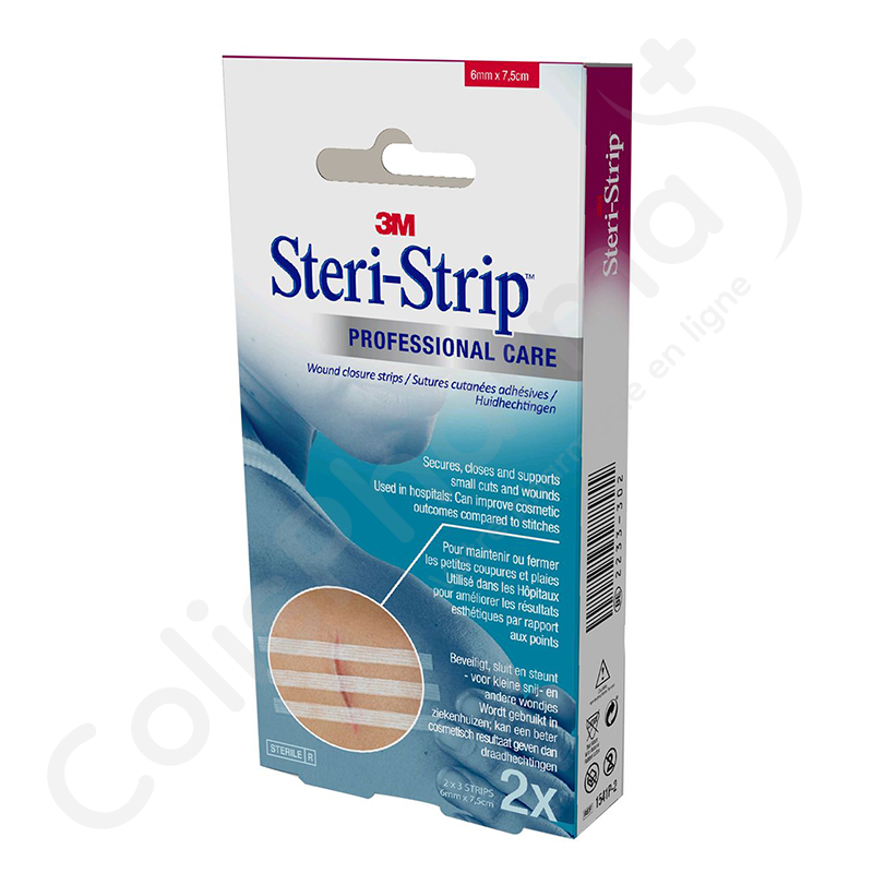 Les sutures cutanées adhésives Steri-Strip de 3M constituent la solution efficace et sans douleur pour refermer les plaies. Ces sutures se présentent sous forme de bandelettes constituées d'un support microporeux, en fibres de rayonne renforcées par des filaments de polyester. Elles sont pourvues d'une couche adhésive hypo allergénique en acrylique de synthèse à grand pouvoir adhésif. L'absence de réactions tissulaires influence favorablement la cicatrisation. L'application et le retrait sont indolores et conviennent parfaitement en pédiatrie. La possibilité d'accoler régulièrement les lèvres de la plaie sur toute leur longueur donne un très bon résultat esthétique (pas de marques en échelle). Les Steri-Strip sont stériles et sont emballés dans des enveloppes plastiques.