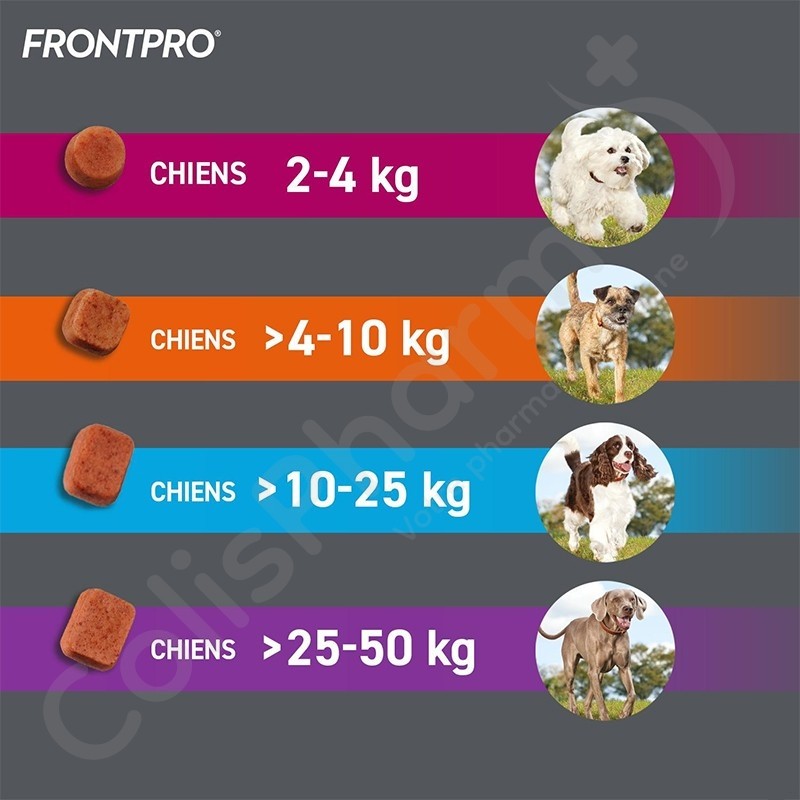 Fiche technique - Frontpro Chien 10 à 25 kg - 3 comprimés à croquer