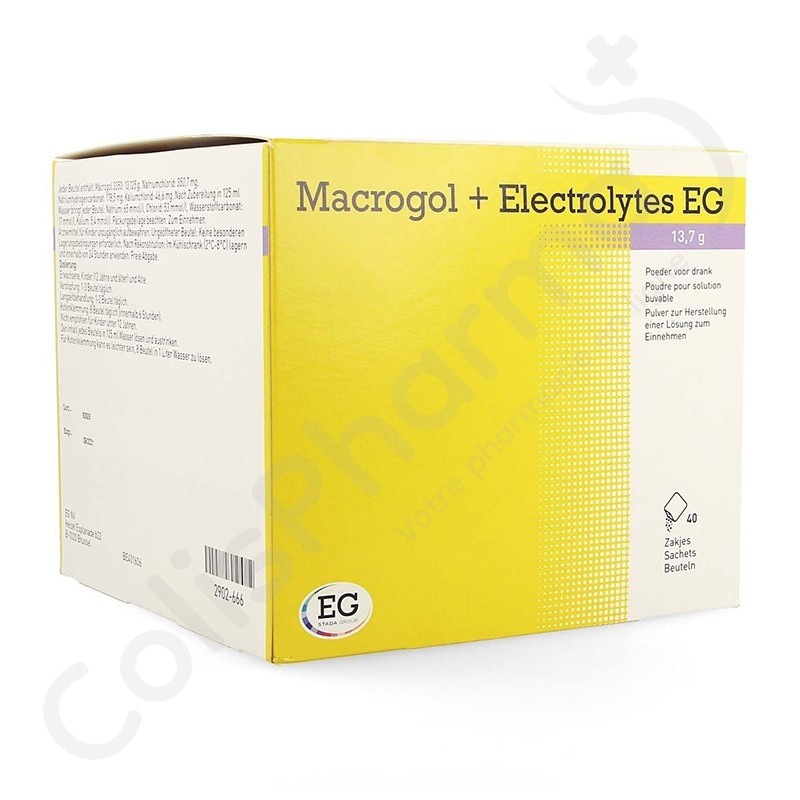 Le nom de ce médicament est « Macrogol + Electrolytes EG 13,7 g poudre pour solution buvable ».