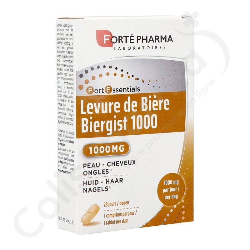 Les Laboratoires Forté Pharma ont mis au point Levure de Bière 1000 dont la formule associe de la levure de bière à de la vitamine B8 et du zinc, afin de contribuer à la beauté de la peau, des cheveux et des ongles.