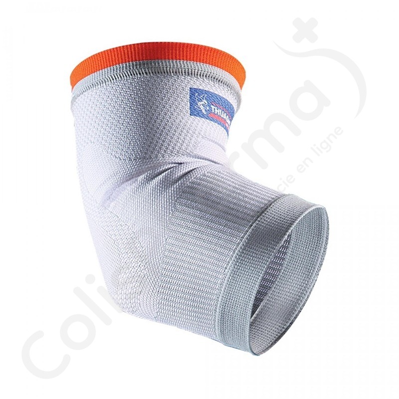 Durant la pratique de nombreux sports, votre bras et votre coude sont fortement sollicités. La coudière de contention Thuasne Sport exerce une compression homogène sur l'articulation et améliore son positionnement. Son enveloppe anatomique en tricot maintient votre coude sans faire de plis et sans glisser le long du bras.