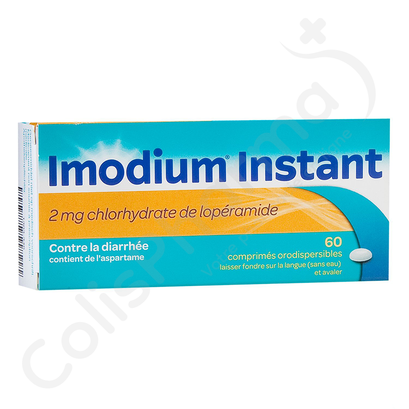 Avec les comprimés orodispersibles d'Imodium Instant, vous partez en voyage l'esprit léger et évitez de voir vos vacances gâchées par des crises de diarrhée. Les comprimés orodispersibles au goût agréable de menthe fondent en quelques secondes sur votre langue et sont donc faciles à avaler sans eau. Particulièrement pratiques dans votre pharmacie de voyage et lors de vos déplacements. Les comprimés Imodium Instant contiennent le principe actif lopéramide (chlorhydrate de lopéramide) qui permet le traitement symptomatique sûr, rapide et efficace de la diarrhée du voyageur et de la diarrhée aiguë ou chronique.