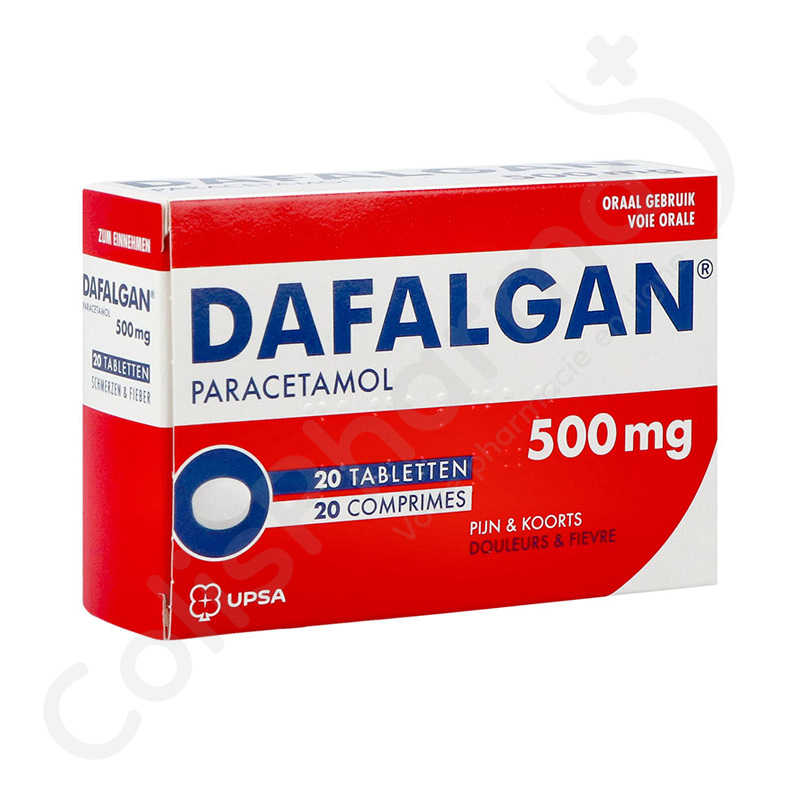 Le Dafalgan 500 mg, vendu en Belgique, est un antidouleur et antipyrétique dont le principe actif est le paracétamol. Il équivaut donc au Doliprane, vendu en France, dont le principe actif est également le paracétamol. Le Doliprane, nom commercial français du paracétamol, peut être retrouvé sur ColisPharma sous le nom suivant : Dafalgan.