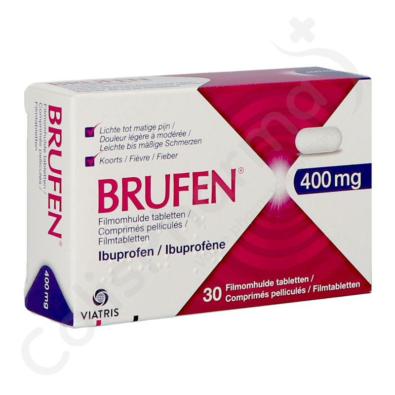 Brufen 400 mg : prenez 1 comprimé avec un grand verre d'eau. Le Brufen est généralement bien toléré par l'estomac. Prenez donc la première dose à jeun, dès le réveil. Il est conseillé aux patients sensibles de l'estomac de prendre l'ibuprofène au cours d'un repas. Prenez les doses suivantes de préférence avant les repas (environ 1 heure avant les repas).