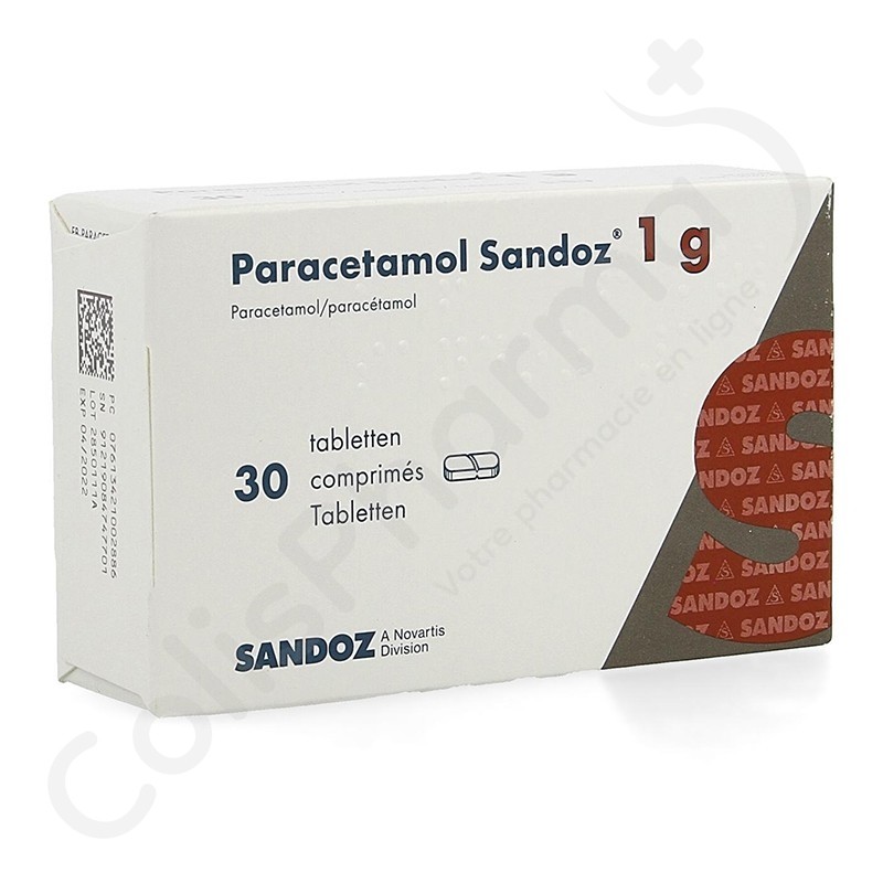 Le Paracétamol Sandoz 1g, vendu en Belgique, est un antidouleur et antipyrétique dont le principe actif est le paracétamol. Il équivaut donc au Doliprane, vendu en France, dont le principe actif est également le paracétamol. Le Doliprane, nom commercial français du paracétamol, peut être retrouvé sur ColisPharma sous le nom suivant : Paracétamol.