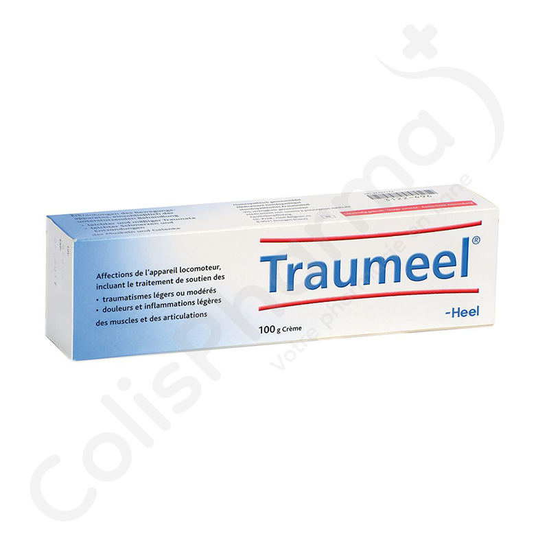 Traumeel crème est un médicament homéopathique à usage externe utilisé en cas d'affections de l'appareil locomoteur, incluant le traitement de soutien des traumatismes légers ou modérés, des douleurs et inflammations légères des muscles et des articulations. Vous devez vous adresser à votre médecin si vous ne ressentez aucune amélioration ou si vous vous sentez moins bien après 1 semaine.