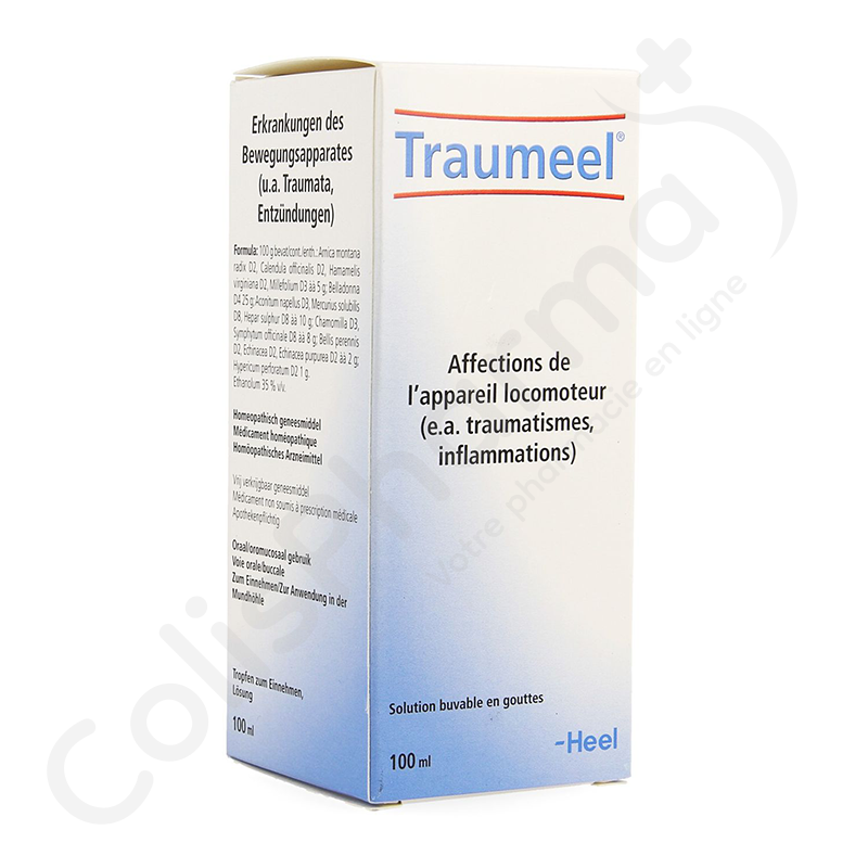 Traumeel est un médicament homéopathique contenant des composants traditionnellement utilisés en cas d'affections de l'appareil locomoteur, incluant le traitement de soutien des traumatismes légers ou modérés et des douleurs et inflammations légères des muscles et des articulations. Ce médicament homéopathique est utilisé selon les principes de la médecine biorégulatoire.