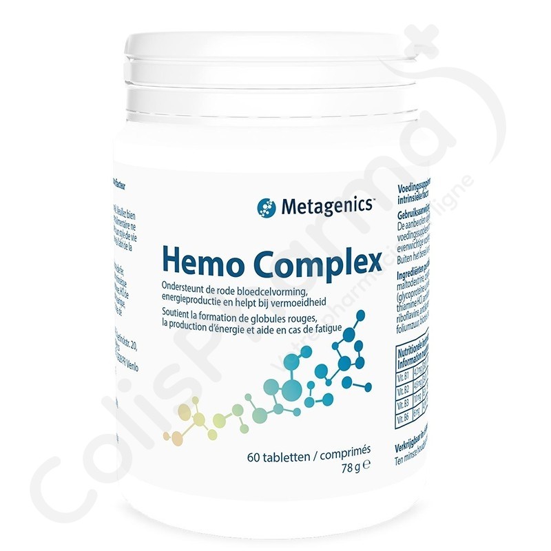 Hemo Complex contient du fer, de la vitamine B et C qui soutiennent la formation de globules rouges, la production d'énergie et qui aident en cas de fatigue.