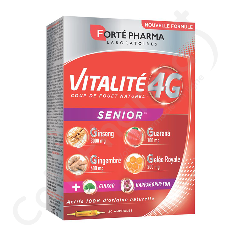 L'efficacité de Vitalité 4G Seniors repose sur le complexe 4G (Ginseng, Gelée royale, Gingembre, Guarana) :