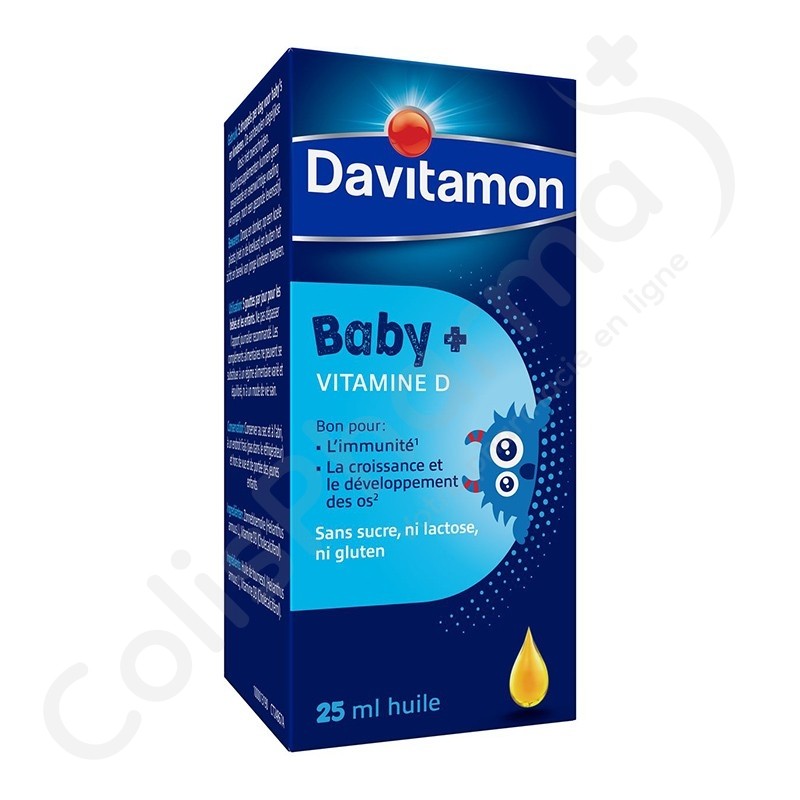 Les bébés, les jeunes enfants et parfois même les enfants plus âgés ont besoin d'un supplément de vitamine D. Chez les enfants en pleine croissance, la formation des os se fait beaucoup plus rapidement qu'après cette période. Davitamon Baby Vitamine D Huile est une solution de vitamine D3 dans de l'huile. Davitamon Baby Vitamine D Huile ne contient pas de sucre, ni de lactose, ni de gluten.