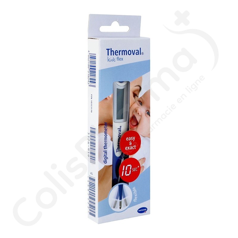 D'un usage aisé, il se prête aussi bien à la prise de température axillaire, orale ou rectale. Le thermomètre HARTMANN Thermoval Kid Flex est doté d'un affichage très large, avec signal acoustique et d'une mémoire.