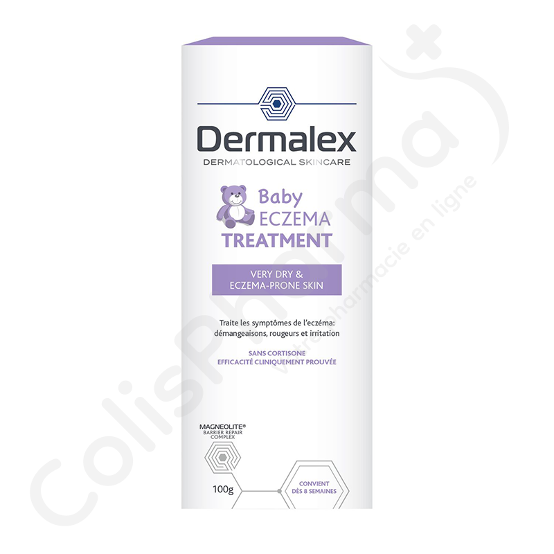 Dermalex - Crème Eczéma Bébé est une crème qui traite et réduit les symptômes de l'eczéma atopique chez les bébés et les enfants, hydrate et restaure aussi la barrière cutanée.