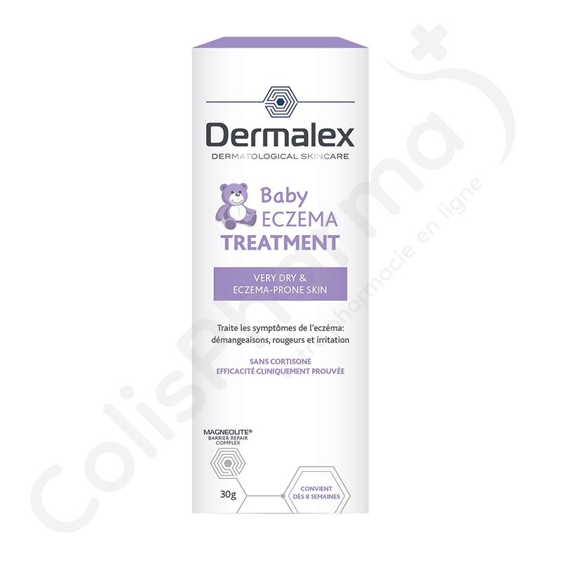 Dermalex - Crème Eczéma Bébé est une crème qui traite et réduit les symptômes de l'eczéma atopique chez les bébés et les enfants, hydrate et restaure aussi la barrière cutanée.