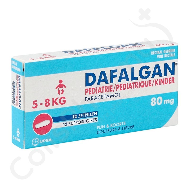 Le Dafalgan Pédiatrique 80 mg, vendu en Belgique, est un antidouleur et antipyrétique dont le principe actif est le paracétamol. Il équivaut donc au Doliprane, vendu en France, dont le principe actif est également le paracétamol. Le Doliprane, nom commercial français du paracétamol, peut être retrouvé sur ColisPharma sous le nom suivant : Dafalgan.