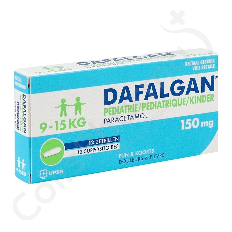 Le Dafalgan Pédiatrique 150 mg, vendu en Belgique, est un antidouleur et antipyrétique dont le principe actif est le paracétamol. Il équivaut donc au Doliprane, vendu en France, dont le principe actif est également le paracétamol. Le Doliprane, nom commercial français du paracétamol, peut être retrouvé sur ColisPharma sous le nom suivant : Dafalgan.