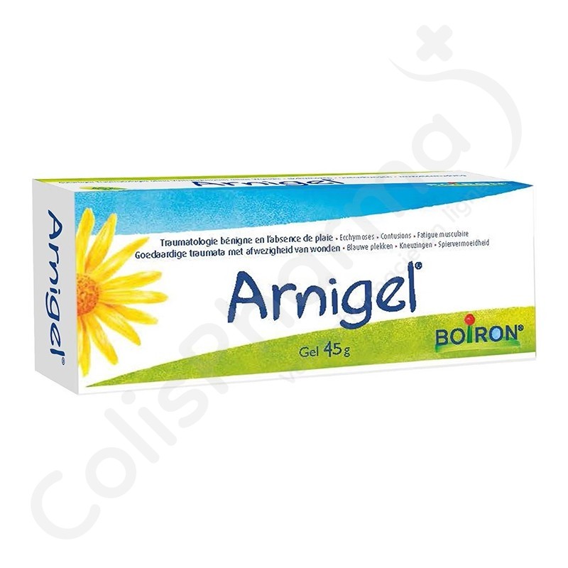 Arnigel est un médicament homéopathique contenant un composant traditionnellement utilisé en homéopathie dans le traitement local d'appoint en traumatologie bénigne en l'absence de plaie bleus, ecchymoses, contusions, fatigue musculaire.
