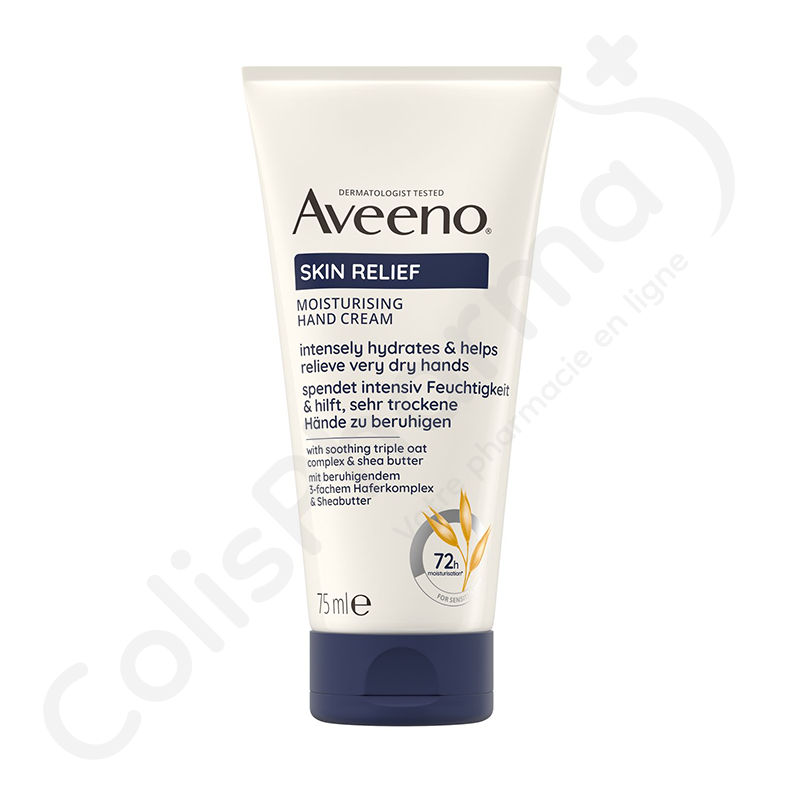 La crème pour les mains Aveeno Skin Relief combine les bienfaits concentrés d'actifs naturels. La formule cliniquement prouvée va au-delà d'une hydratation de 24 heures, améliore significativement l'état de la peau sèche des mains en seulement deux semaines, pénètre rapidement et laisse la peau douce, lisse et saine.