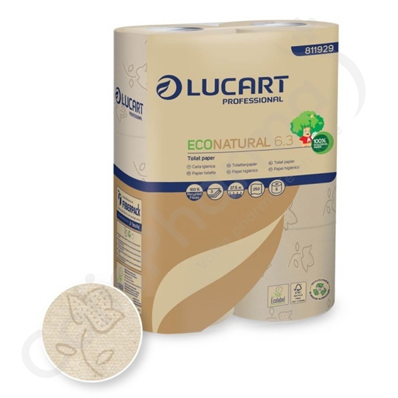 Le papier toilette Lucart Econatural est vendu par sachet de 6 rouleaux de 250 feuilles. Le papier toilette est proposé en 3 plis et en papier recyclé.