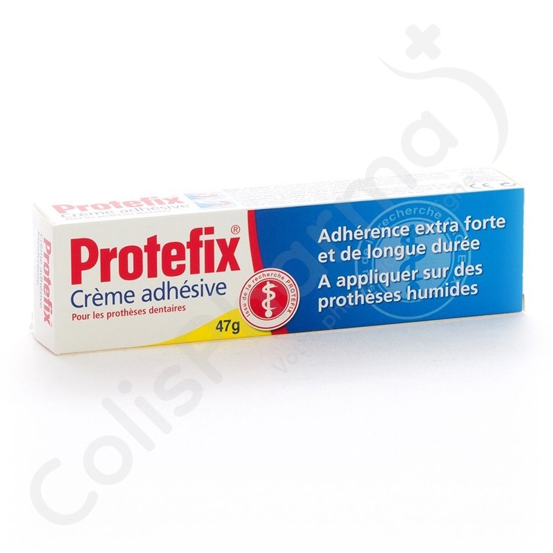 La crème adhésive Protéfix est la solution idéale pour un bon nombre de problèmes d'adhésion. Elle est recommandée dans plusieurs situations difficiles, y compris la surproduction de salive. Facile à apposer et neutre, la crème adhésive n'altère pas le goût des aliments et des boissons.
