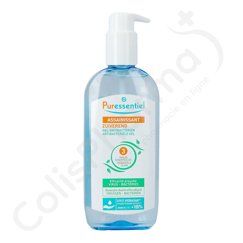 Triple action : antibactérienne, antivirale et adoucissante. 99,9% des virus et bactéries sont détruits dès les 1ères minutes. De plus, Puressentiel Assainissant - Gel antibactérien hydroalcoolique possède un effet hydratant immédiat permettant un gain d'hydratation jusqu'à 105%.