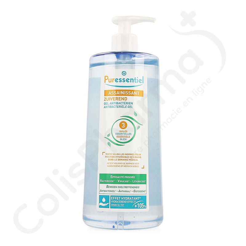 Triple action : antibactérienne, antivirale et adoucissante. 99,9% des virus et bactéries sont détruits dès les 1ères minutes. De plus, Puressentiel Assainissant - Gel antibactérien hydroalcoolique possède un effet hydratant immédiat permettant un gain d'hydratation jusqu'à 105%.