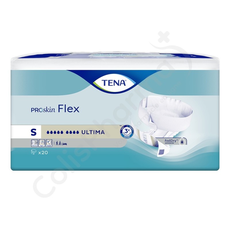 Les langes Tena Flex Ultima sont des changes pour adultes équipés d'une ceinture auto-adhérente. L'absorption ULTIMA convient pour une incontinence urinaire et fécale sévère.