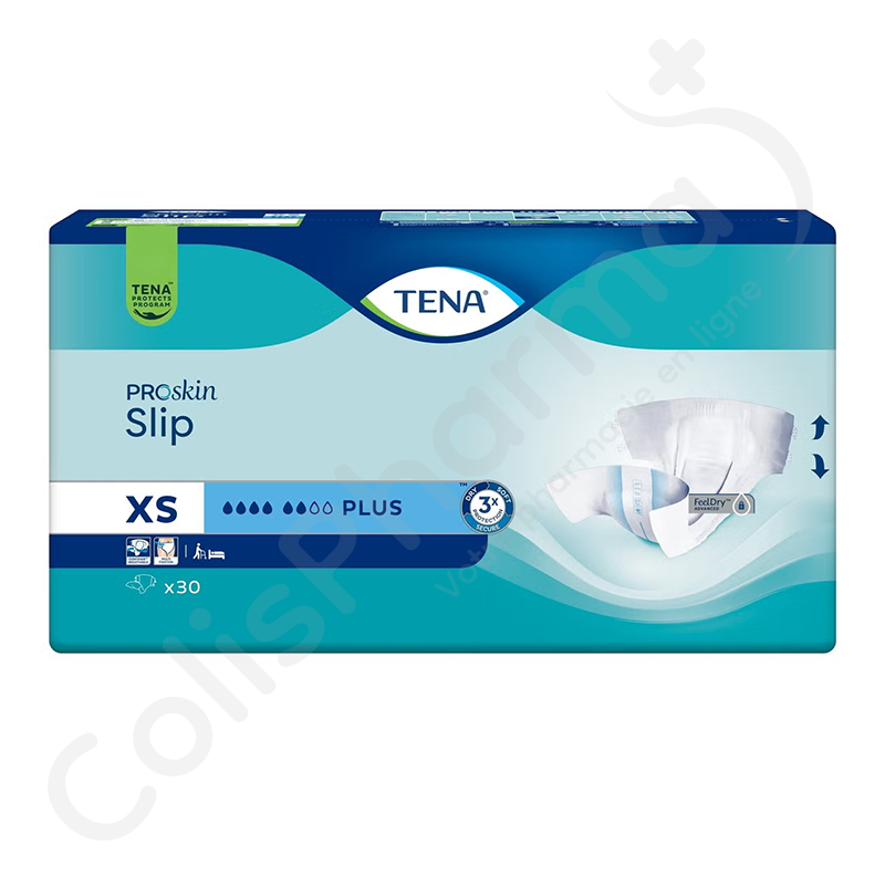 Les changes complets Tena Slip sont fabriqués dans une matière fine textile très douce au toucher qui offre un grand confort. Les élastiques au niveau de l'entre-jambe épousent les formes du corps et maintiennent parfaitement la protection en place. Les risques de fuite sont fortement réduit lors de vos activités quotidiennes ou pour des utilisateurs agités. Son noyau à super absorbant FeelDry garde la peau sèche et la laisse respirer grâce à la technologie ConfioAir.