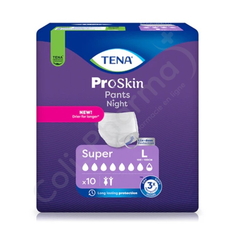 Les langes Tena Pants Night Super sont des changes pour adultes qui s'enfilent comme un sous-vêtement et sont discrets sous les vêtements. L'absorption SUPER convient pour une incontinence urinaire et fécale forte.