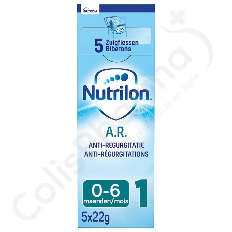 Nutrilon A.R. 1 est une denrée alimentaire destinée à des fins médicales spéciales. Peut constituer la seule source d'alimentation dès la naissance si l'allaitement n'est pas possible ou en complément du lait maternel. Utilisez uniquement Nutrilon A.R. 1 sous la supervision d'un professionnel de la santé. Nutrilon A.R. 1 ne convient pas pour les bébés prématurés. La consistance du lait Nutrilon A.R. 1 étant plus épaisse, adaptez la tétine si nécessaire.