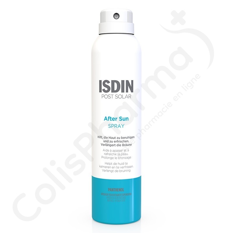 ISDIN PostSolar AfterSun Spray est un spray très pratique qui vous aidera à atteindre les zones les plus difficiles. La combinaison de ses actifs, comme l’aloe vera, la vitamine E et la centella asiatique nourrissent la peau et l’empêchent de peler, votre bronzage est donc prolongé.