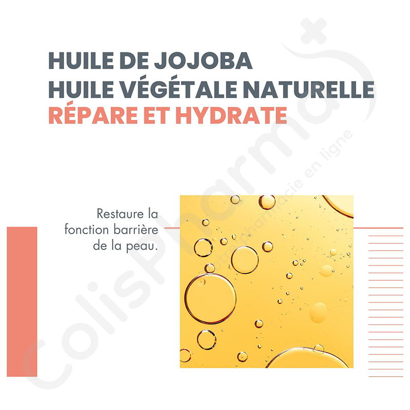 RÉPARATEUR : enrichi en antioxydant et en huile de jojoba. Répare la barrière cutanée.