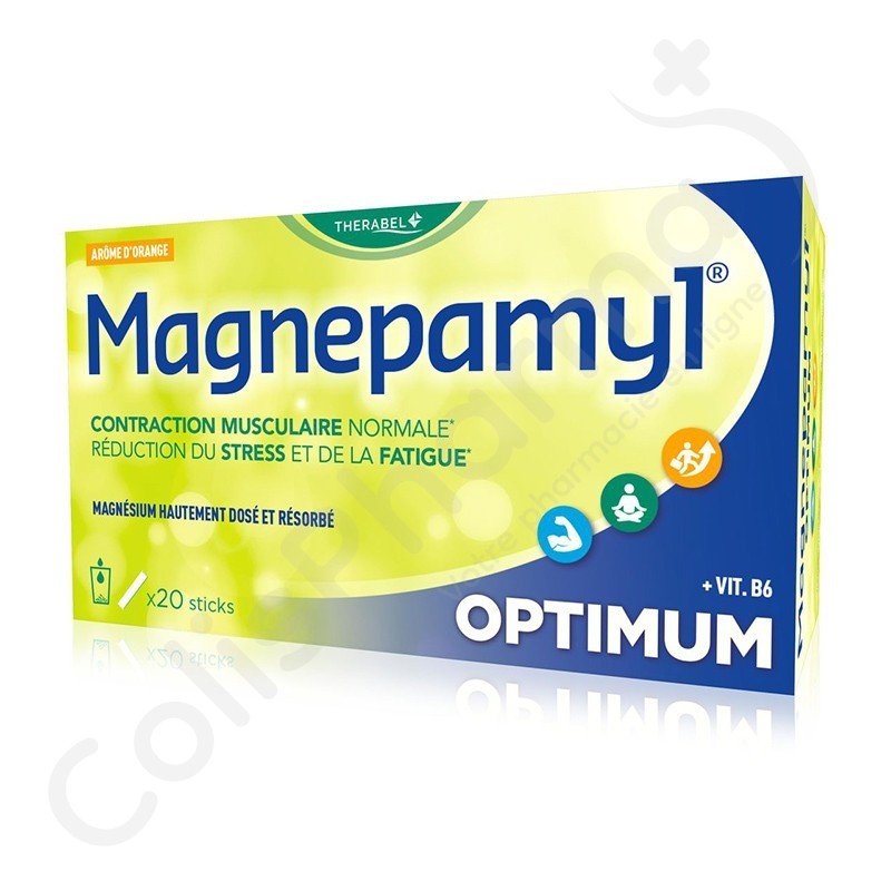 Magnepamyl Optimum® est un complément alimentaire à base de différents sels de magnésium et de vitamine B6.